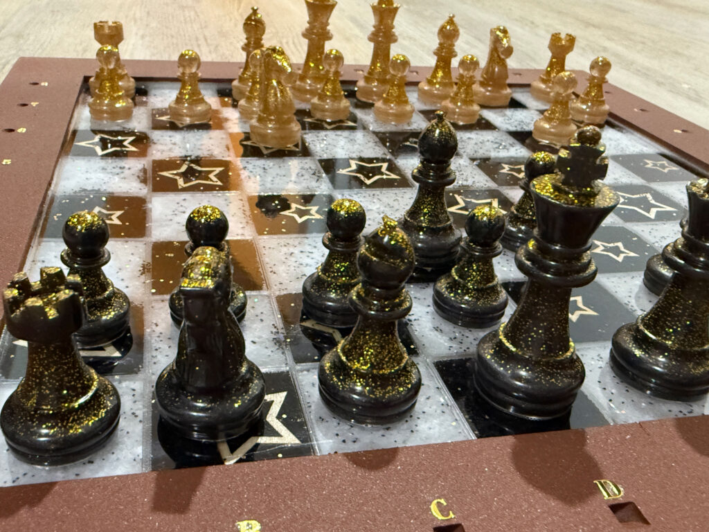 HINWEIS: Wenn Sie an individuellen Schachspielen oder ähnlichen Artikeln aus Epoxidharz und 3D-Druckern interessiert sind, zögern Sie bitte nicht, mich zu kontaktieren.