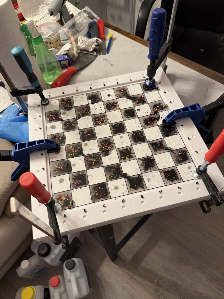 Let’s show you how we make a chessboard. We’ll actually create videos for this, but working on it while also filming (professionally) is a bit challenging. We haven’t yet created a full video. However, we can illustrate the process with visuals.