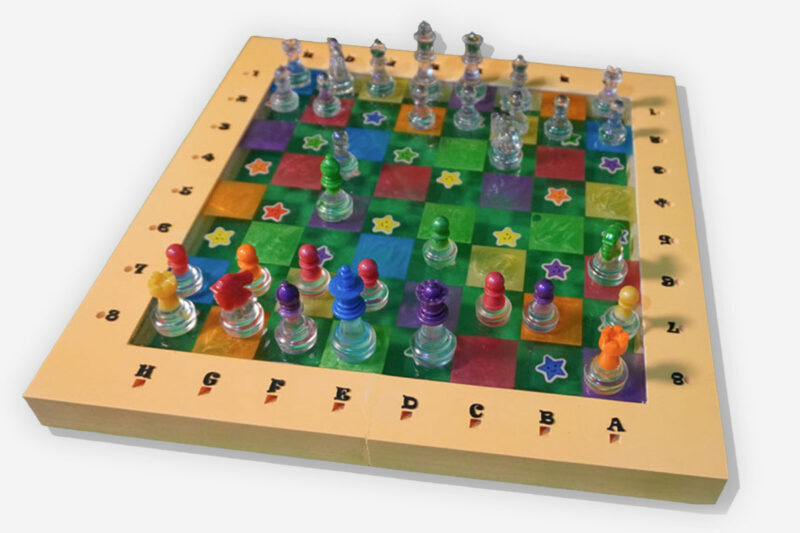Handgefertigtes Schachset „Bunte Sterne“